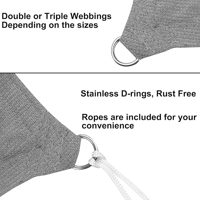 - 3. Strong & Durable (Reinforced Edges) Features heavy-duty double-stitched seams to prevent fraying and distortion. Each corner has a stainless steel D-ring (secure and long-lasting attachment).
