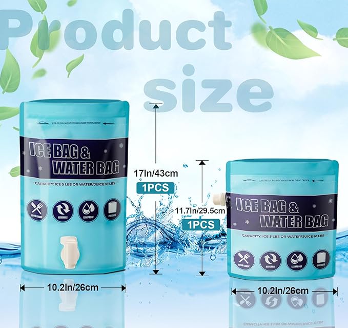 - Durable & Versatile for Any Adventure: Made from food-grade, eco-friendly materials, these leakproof ice bags are built to last. Whether for BBQs, camping, sports events, or travel, they provide reliable cooling and portable hydration—your all-in-one cooling and water storage solution!