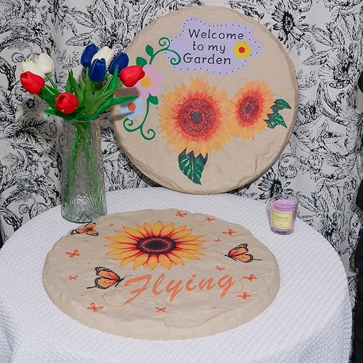 4Pcs Round Sunflower Stepping Stone Outdoor Garden Walkway, Durable Plastic Pavers for Patio, Pathway, and Landscaping, Weatherproof Stepping Stones with Ground Stakes for Easy Installation