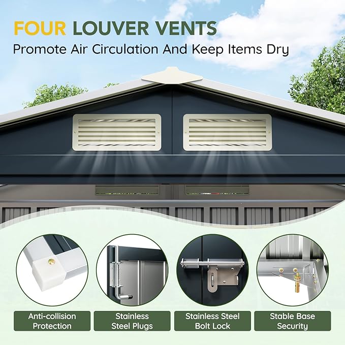 - Lockable Double Doors for Security – Features reinforced lockable doors to keep your tools, garden equipment, or cleaning supplies safe and protected from theft or animals.