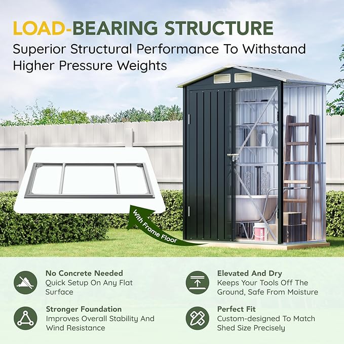 - Steel Construction & Compact Size: This shed is ideal for storing garden tools, bicycles, pool supplies, and seasonal equipment in limited outdoor spaces.