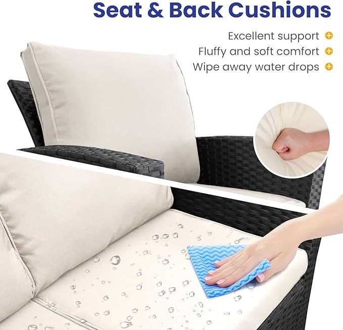 - All-Weather Durability: Built to last,the patio furniture set combines rugged construction with low-maintenance care. The powder-coated steel frame and handwoven PE wicker can spend less time maintaining and more time enjoying your outdoor