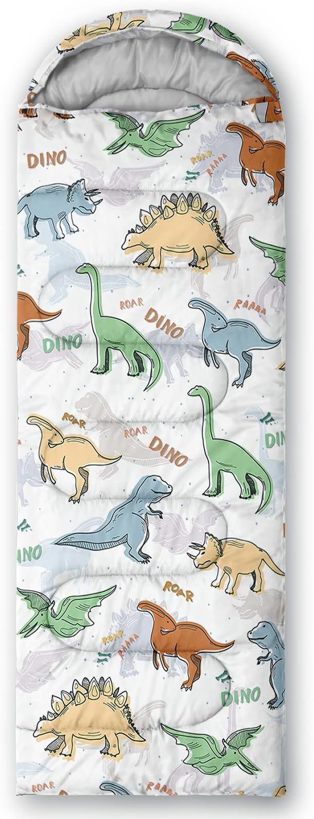 - Unique Dinosaur Design:This Dinosaur pattern sleeping bag is made of 3D digital printing with vibrant colors and patterns,size: 31W x 90L inches,temperature range: 32℉-77℉ (0℃-25℃),it also also have a weather resistant waterproof design to keep you warm and prevent you from any dampness,can be used in 3 seasons