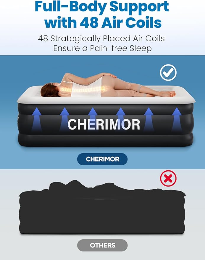 - Normal PVC Expansion After 2-3 Days: During the initial inflation, the air mattress king size will stretch slightly. NOT leaks! This is a natural process, and the mattress will fully settle within 2-3 days. Re-inflate as needed to maintain ideal firmness