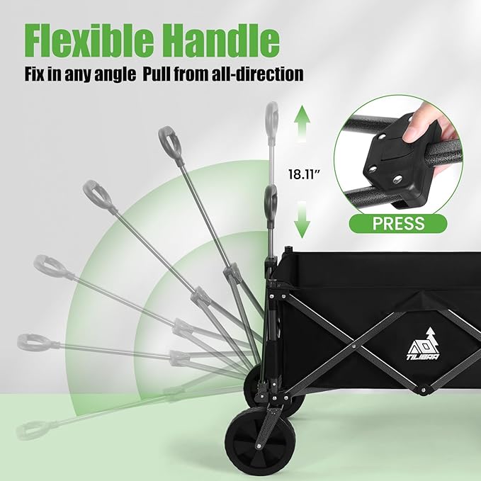 Collapsible Wagon Carts with Large Capacity, Foldable Grocery Cart with Side Pockets for Outdoor,Utility Beach Wagons Heavy Duty,300lb Load-Bearing for Camping, Garden, Sports, Shopping-Black
