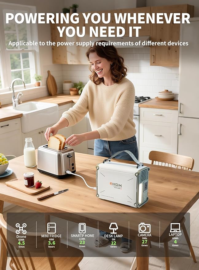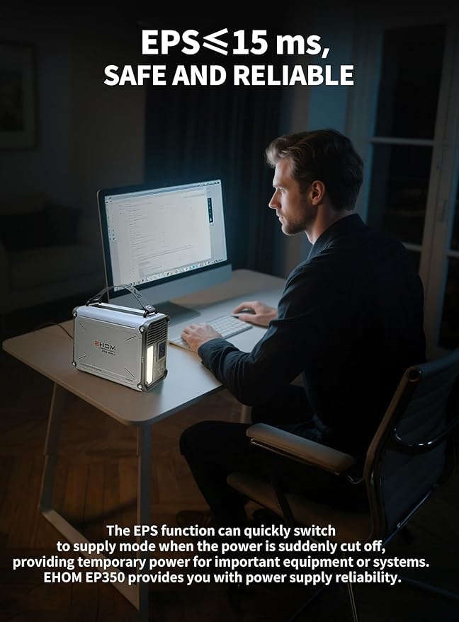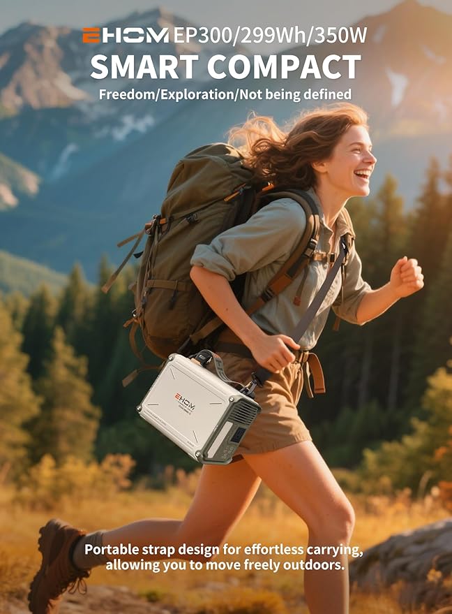 - 【299Wh Capacity, Compact and Powerful】: EHOM EP350 portable power station has a capacity of 299Wh and a rated output power of 350W (peak 700W). It can not only output pure sine waves for you, allowing your electrical appliances to use clean energy, but also drive more power-consuming electrical appliances with its high power, enabling you to power your devices with peace of mind