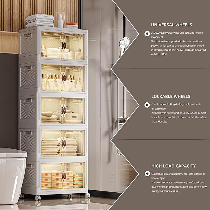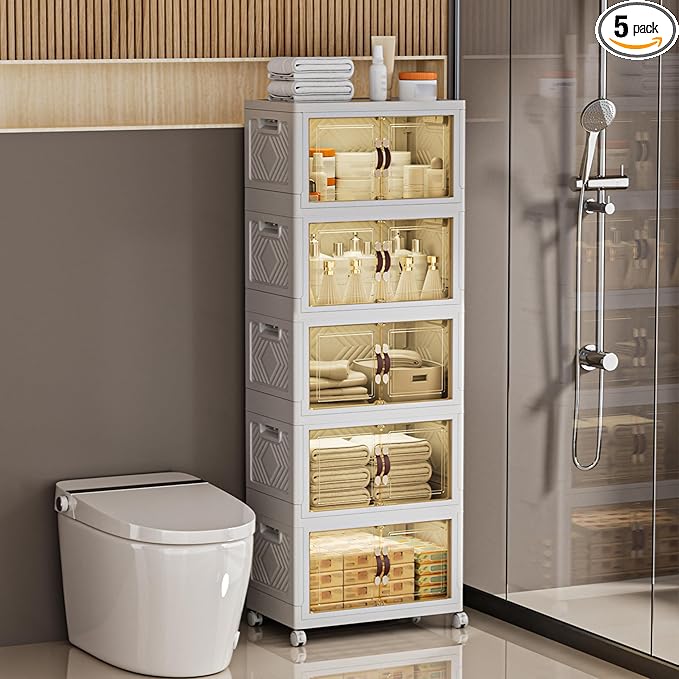 - Efficient Space Tidying: This stackable storage bin size is 66.3 x 23.6 x 15.0 inches. Includes 5 organiser box with wheels and 1 top cover to prevent dust intrusion. The current item option is 5 tier. This stackable storage bin has a maximum capacity of 332 QT (83 Gal). When you feel your space is cluttered, choose us for your storage needs.