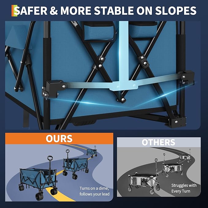 - Built to Last: This large beach wagon features a strong steel frame and 600D Oxford fabric, ensuring an extra-high weight capacity of up to 350 lbs. Meanwhile, the thickened Oxford fabric provides maximum tear resistance