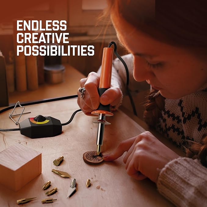 - THE ULTIMATE CRAFT BURNING TOOL: Take your projects to the next level with the Craft Burning Tool, featuring 9 premium tips and customizable temperature control. Designed for wood, leather, fabric, foam, and more, it gives you the precision and control to create professional-quality designs with ease and confidence.