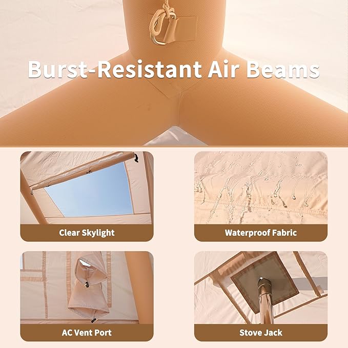 - 【3 Min Quick Setup】No poles, no hassle! Simply inflate within 3 minute with the integrated PVC air beam structure. Designed to be leak-proof, explosion-proof, and pressure-regulated, ensuring exceptional wind resistance and long-lasting durability