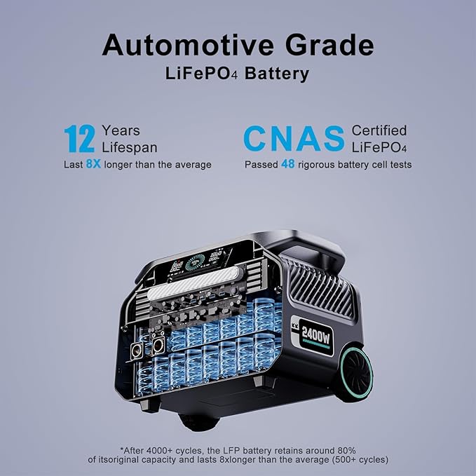 IEE 2048Wh Solar Generator,2400W Portable Power Station P2400 with LiFePO4 Batteries and 400W Solar Panel,1800W AC Charging,4 AC Outlets Up to 2400W for Home,Power Outages, Camping,and RVs