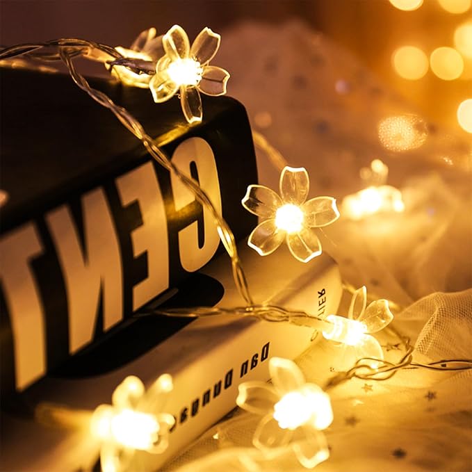 - 【 Shaped Flower String Lights 】33ft 100 LED cherry blossom cute flower string lights with long clear wire is flexible and easily DIY or shaped, the connectable tail plug can connect another string lights and become 66ft, 99ft, 132ft or 165ft more.