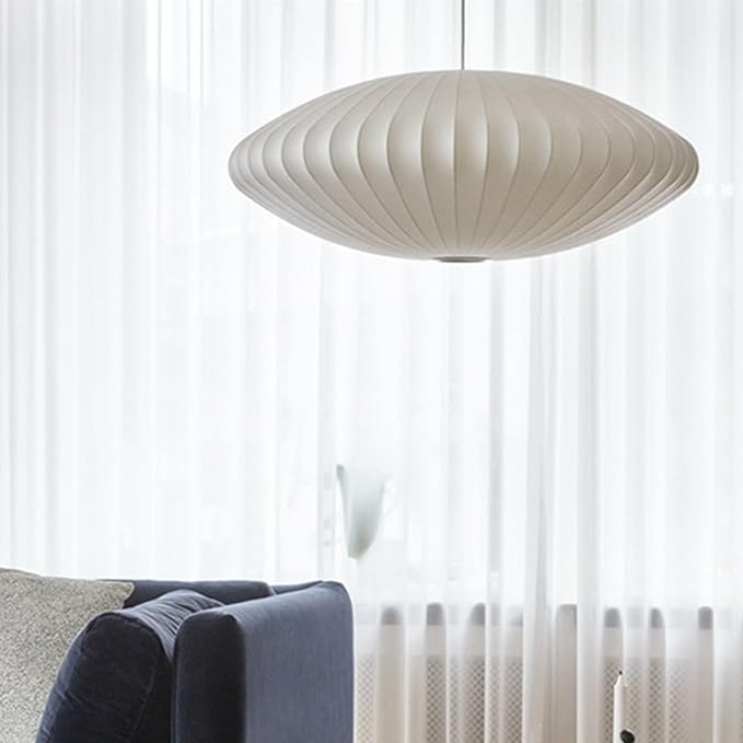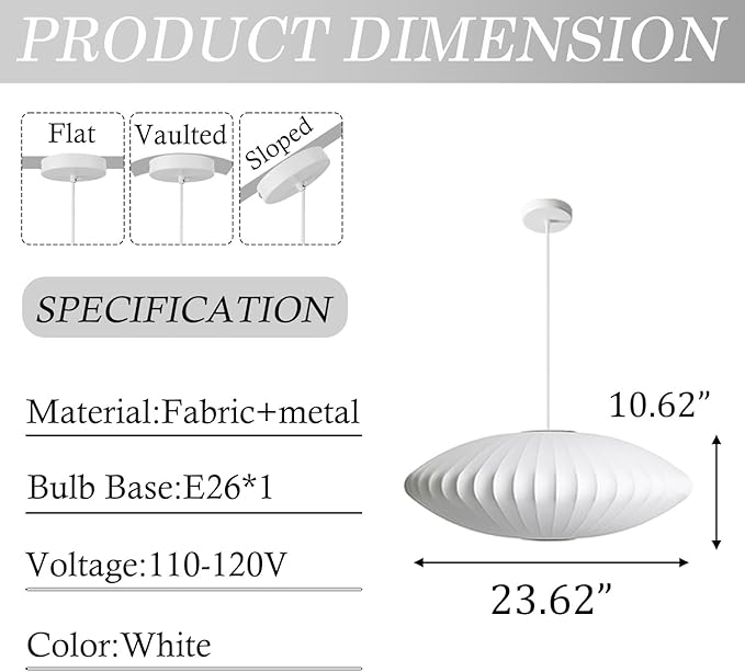 - Fabric Lantern Pendant Light Design:The Japanese Pendant Light perfect combination of modern metal, cloth fabric frame and beautiful white Stretch shade. The simple frisbee shaped lampshade are perfectly integrated, brings country cottage and farmhouse aesthetics