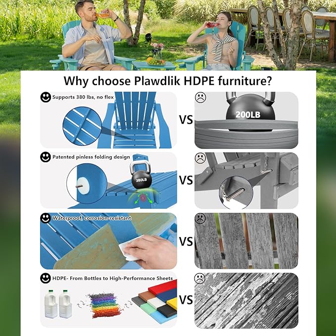 - ☘️【3-year Service】: Plawdlik provides 3 years after-sale service. If you have any question about the order or product, please feel free to contact us, we want our customers to be 100% satisfied with Plawdlik adirondack chair
