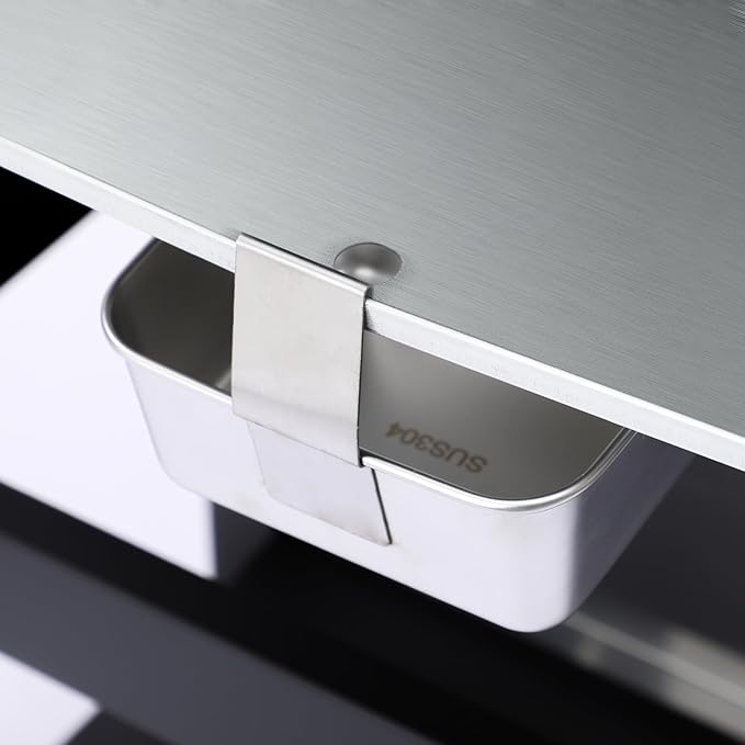 - FEATURES: The whole Stainless steel control panel with chromium plating control knob makes this propane gas grill more study and delicate, a stainless steel handle and a built-in stainless steel thermometer on the cover lid, two foldable tables and two heavy duty wheel casters for storage and moving