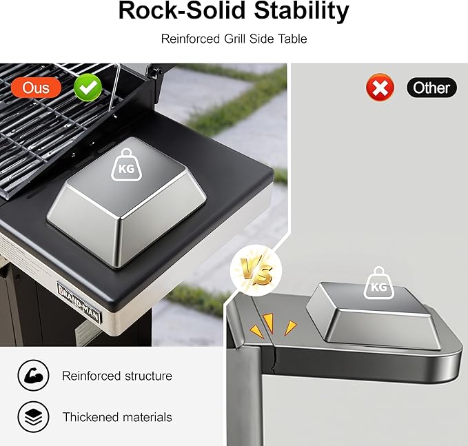 - Premium Construction: Heavy-Duty, durable materials ensures long-lasting performance. Robust design provides years of reliable outdoor cooking. Features heavy-duty double-layer lids with heat-resistant handles for enhanced safety and durability