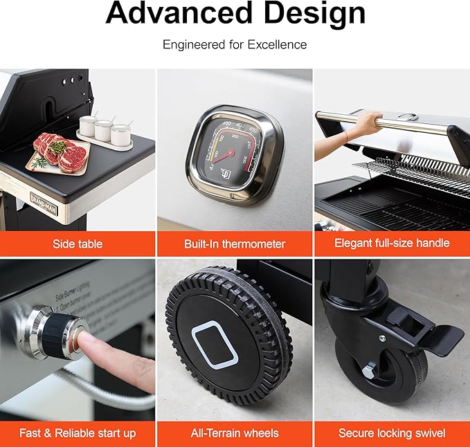 - Innovative Flame Ignition: Experience reliable, instant ignition with our flame thrower & electronic ignition system. No more struggling with lighters or matches—effortless startup every time ensures you're ready to cook in seconds