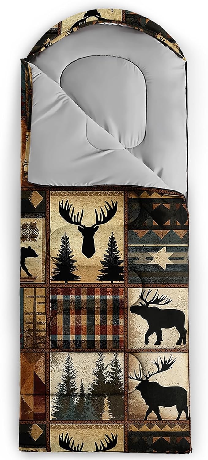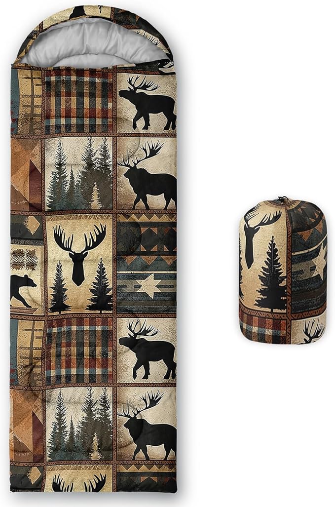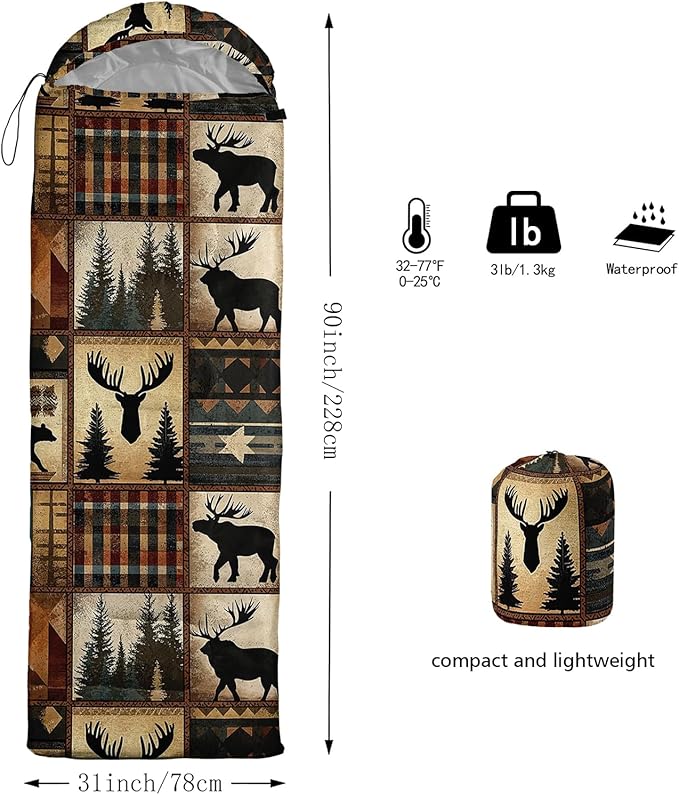 - Unique Deer Design:This Deer pattern sleeping bag is made of 3D digital printing with vibrant colors and patterns,size: 31W x 90L inches,temperature range: 32℉-77℉ (0℃-25℃),it also also have a weather resistant waterproof design to keep you warm and prevent you from any dampness,can be used in 3 seasons